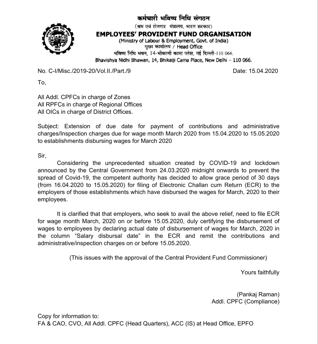 The Complete Circular can be accessed at: http://www.a2ztaxcorp.com/wp-content/uploads/2020/04/Govt-extends-deadline-to-file-PF-contribution-returns-for-the-month-of-March-from-April-15-to-May-15.jpg